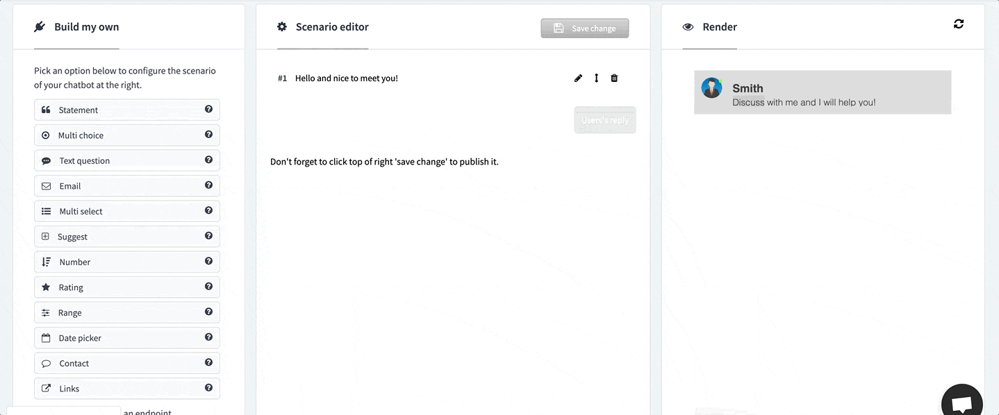 • Customize the scenario of your chatbot